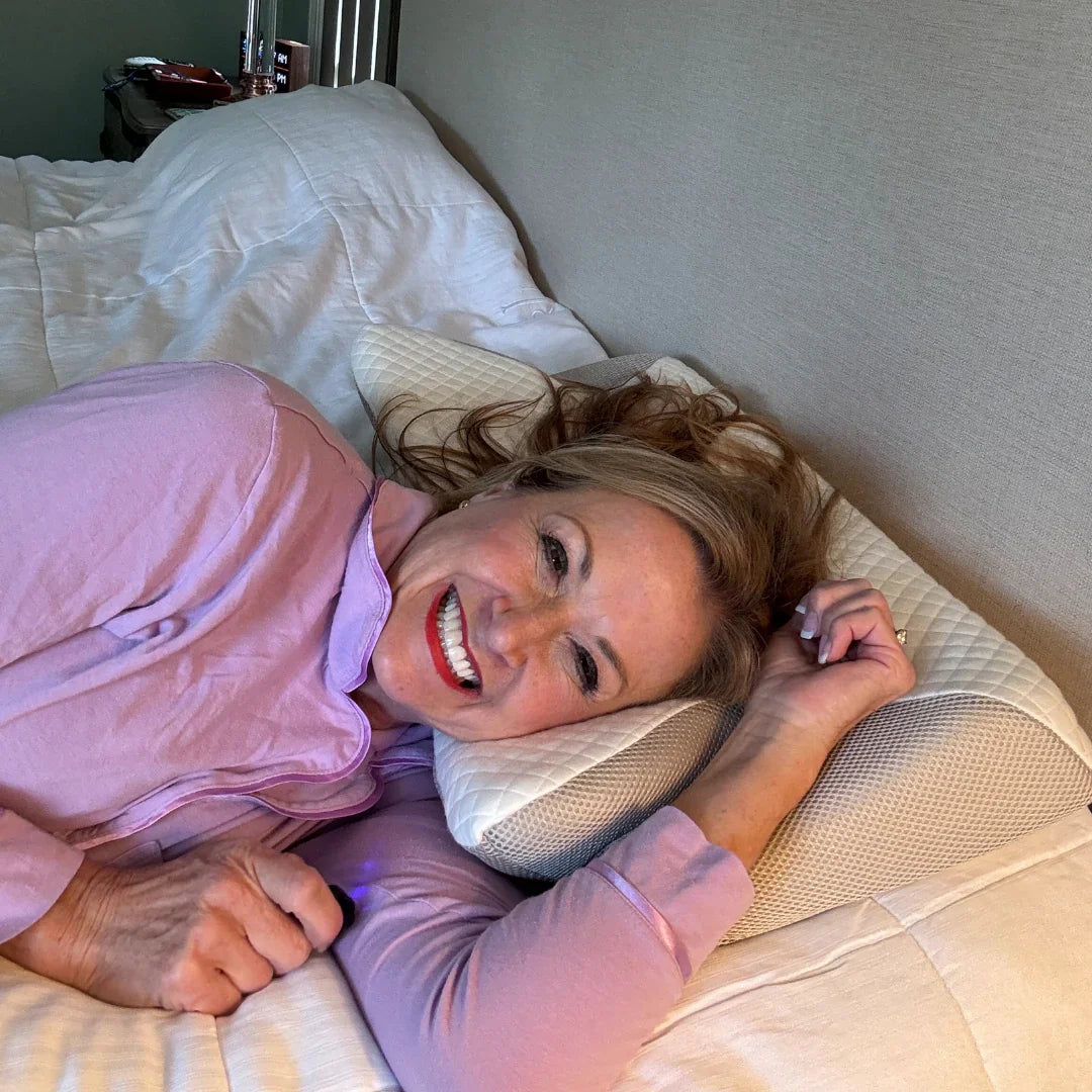 Kaip padeda Serenight™: Ergonomiškas dizainas laiko galvą ir kaklą teisingoje padėtyje, geriau ištiesindamas kvėpavimo takus. Tai padeda sumažinti kvėpavimo sutrikimus ir skatina gilesnį, nenutrūkstamą miegą.